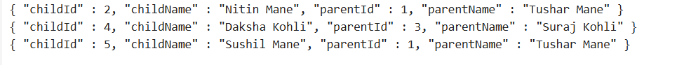 { "_id" : 2, "name" : "Nitin Mane", "parentId" : 1 }