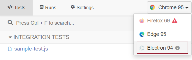 Try using Electron which is the default browser that comes with Cypress instead of Chrome 95.